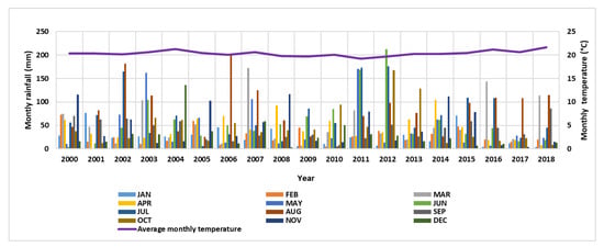The Thyspunt area is located in the Eastern Cape Province of South Africa, approximately 120 km west of the city of Port Elizabeth, including the Oyster Bay and Cape St. Francis and St. Francis Bay towns (Figure 1). The drainage of the area comprises a network of streams, rivers and wetlands, while the climate is generally humid with warm summers (with an average temperature of 25 °C) and cold winters with average minimum temperature dropping to below 6 °C (Figure 2). The area experiences rainfall throughout the year, with mean monthly rainfall that ranges from 3 mm to 213 mm, and an average annual rainfall of about 622 mm (Figure 2). The Krom and Klipdrift Rivers drain the southeastern and the northwestern part of the area, respectively, and join the Indian Ocean (Figure 1). The Table Mountain Group (TMG) rocks form topographic highs, since they are highly resistant to weathering and erosion.
