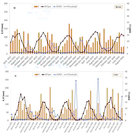 - the characterization of the actual evapotranspiration dynamic at the seasonal scale for both energy and water limited systems, by illustrating a methodology able to identify dry (water-limited) and wet (energy-limited) states transition only based on meteorological data;