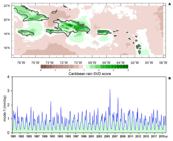 - Jury, M.R. An inter-comparison of observational, reanalysis, satellite, and coupled model data on mean rainfall in the Caribbean. J. Hydrometeor. 2009, 10, 413–430. [Google Scholar] [CrossRef]