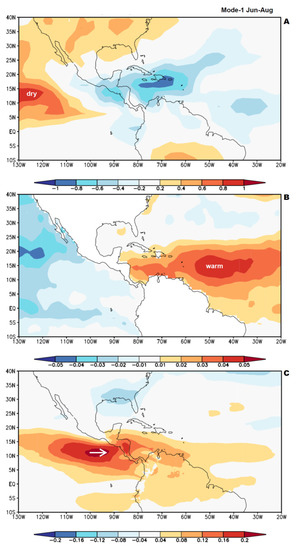 - Gamble, D.W.; Parnel, D.B.; Curtis, S. Spatial variability of the Caribbean mid-summer drought and relation to the north Atlantic high. Intl. J. Climatol. 2008, 28, 343350. [Google Scholar] [CrossRef]