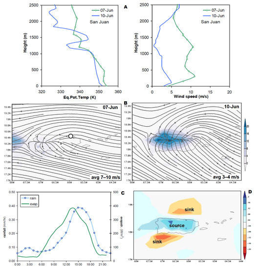 - Jury, M.R.; Chiao, S. Lee-side boundary layer confluence and afternoon thunderstorms over Mayaguez, Puerto Rico. J. Appl. Meteor. Climatol. 2013, 52, 439–454. [Google Scholar] [CrossRef]