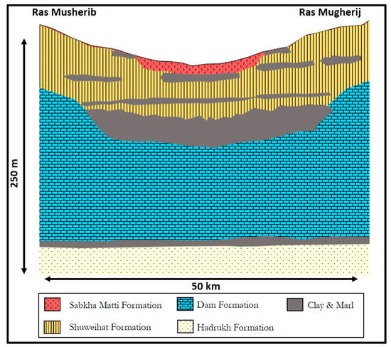 Generalized geologic cross section of the sabkha Matti from Ras Musherib in the west to Ras Mugherij in the east, as shown in Figure 1.