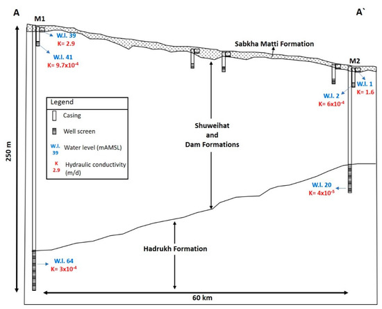 The following are available online at https://www.mdpi.com/2306-5338/7/4/94/s1: Table S1: Well information and estimated horizontal hydraulic conductivities for the sabkha Matti Formation, obtained from slug tests. Table S2: Water level measurements from the multi-level wells at the sabkha Matti, confirming the potential of upward leakage from the regional Hadrukh and Dam Formations into the sabkha. Water levels are in meters above sea level. Table S3: Water level measurement data to determine the ratio of infiltrated rainwater to the sabkha Matti Formation.