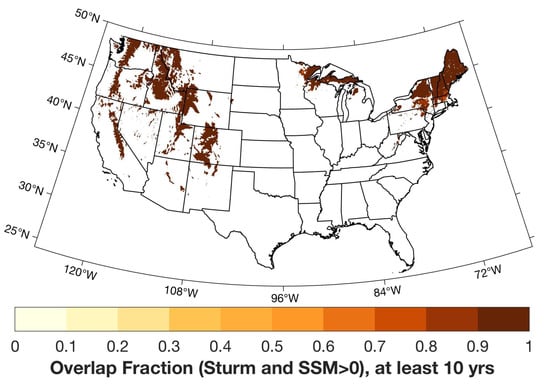 - Zeng, X.; Broxton, P.; Dawson, N. Snowpack Change From 1982 to 2016 Over Conterminous United States. Geophys. Res. Lett. 2018, 45, 12940–12947. [Google Scholar] [CrossRef]