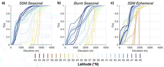 3.3. Snow Seasonality Relations to Elevation and Latitude