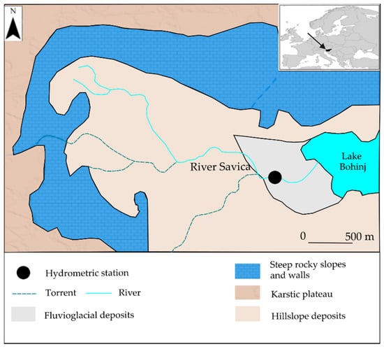 Geological sketch map of Savica at Ukanc watershed (modified from []).