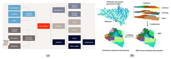 Example of how an application of the FILLM could look, as a combination of: (a) stakeholder mapping, (b) the Soil and Water Assessment Tool (ArcSWAT), (c) stakeholder prioritisation and (d) BMP evaluation of different strategies (e.g., water allocation for different uses). Adapted from: [42,43,44].