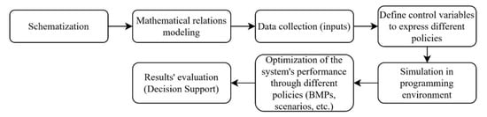 Another difficulty arises when the tools narrow the applicability of methods, which seems to pave the way for future modelling approaches. For example, as shown in Table A1, socio-economic aspects appear in only a few cases. This is one of the main reasons that the concept of hydro-economic modelling was expanded as a DSS tool [65,66]. Most of the reviewed hydro-economic models suggest that when the natural–environmental system is simulated, the expression of its components–activities (e.g., demand and supply node relations) as optimisation equations (e.g., minimisation of costs or maximisation of benefits resulting from each activity, subject to the according constraints) is a way of incorporating more socio-economic factors.