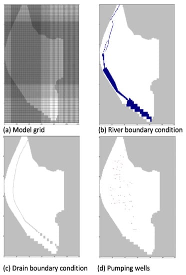 19] used a relatively large grid size of 300 × 300 m to study the entire watershed area. The present study conducted precise groundwater level and water budget analyses on a small demonstration area of ~4 km