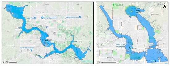 - Gilles, D.; Young, N.; Schroeder, H.; Piotrowski, J.; Chang, Y.J. Inundation mapping initiatives of the Iowa Flood Center: Statewide coverage and detailed urban flooding analysis. Water 2012, 4, 85–106. [Google Scholar] [CrossRef]