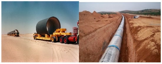 Example 6. During the planning and construction of Libya’s Great Man-made River, several engineers convinced the New York Times newspaper, that instead of being a water distribution system consisting of wells, pumps, and 4 m diameter pipes, Figure 6, for transporting water from aquifers under the Sahara Desert to agricultural and domestic demand sites, the project was really intended for transporting troops and tanks in trucks and trains to where they could invade Libya’s neighboring countries without being seen by satellites. This “news”’ was published on the front page of the New York Times, whose motto is “all the news that is fit to print,” on 2 December 1997. Indeed, it supported the popular notion that Libya’s government was not to be trusted [50].