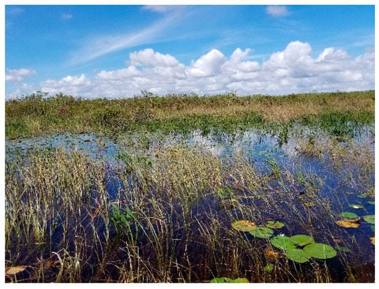 Example 8. Examples of the effects of ignoring the possible long-term consequences of short-term decisions are the drying of the Aral Sea in Southern Kazakhstan and Northern Uzbekistan, as shown in Figure 8, and of lakes and associated wetlands of Sevan in Armenia, Urmia and Gav Khuni in Iran, Chad in Northern Central Africa, Turkana in Kenya, and the Dead Sea in the Jordan Rift Valley, to name a few. In many cases, this depletion of water has resulted in large part from water abstractions to meet irrigation demands. In the short run, increasing crop production along with employment opportunities is beneficial. However, the long-term consequences, can range from environmental feedbacks affecting the health and even lives of people in and out of those basins [54,55]. The interesting question to ponder is whether or not policy makers that were promoting development knew these long-term impacts could occur, and if not, whether such scientific predictions would have changed their water management decisions. One cannot survive in the long-run if unable to do so in the short-run. Or, as they said in Yemen (Example 8): “Why should we worry about this potential crisis? When it happens we may not even be alive.” Example 9. An example of having to adapt to unforeseen consequences involves the current project to restore the ecological health of the vast wetlands of the Everglades in the state of Florida, USA. Begun two decades ago, this project is arguably the most ambitious ecosystem recovery effort anywhere [56]. It is in some sense not in response to poor or incomplete past science but rather to past water management decisions that focused on development and did not consider the environment. The project is essentially a vast re-plumbing scheme aimed at replicating as nearly as possible the historical fresh water flows over the flat wetlands of the Everglades—often called the River of Grass (Figure 9)—that once made South Florida a biological wonderland. These flows were diverted when in the late 1940s the US Army Corps of Engineers initiated a massive flood control project aimed at protecting land for urban and agricultural development. Over a half-million acres were drained by a vast network of levees, canals, and pumping stations. While making Florida’s eastern coast and midlands safer for development, it also destroyed much of the Everglades ecosystem including its wildlife. Now people care more about this unique ecosystem and environment in general than they did when the decision was made to “drain the swamp.” Thus the current restoration project involves taking out much of that drainage and diversion infrastructure and restoring the overland flows to their original patterns to the extent possible. The goal is to maintain what remains of this unique environment and ecosystem. This unique ecosystem is a main reason why many people choose to visit (and spend their time and money in) Florida.