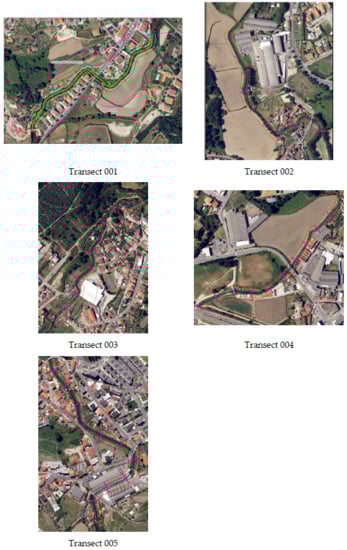 Based on previous surveys and contacts established with authorities from the Guimarães municipality, 5 transects (Figure 1 and Figure 3) were selected, validated from criteria defined by the security protocol, so that the fieldwork could be effective [].