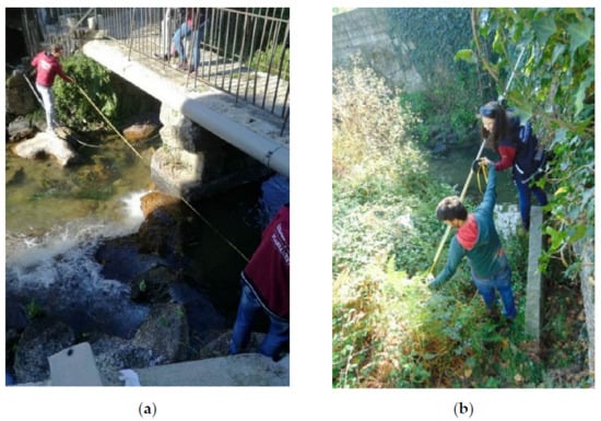 One of the determining concerns in the application of the RHS in the river Selho was the definition of the sampling program, regarding the representativeness of the sample vis-à-vis the population []. In the present work, 5 transepts were carried out on the main course of the river Selho, having accessibility as a fundamental aspect, guaranteeing not only safe conditions, but also that the field work could be effective. Sampling also involves, according to the described methodology, an assessment of risks for the observer. For this, there is an additional form, in which some questions about the location are prior evaluated, so that the observer can indicate the degree of associated risk; classified as low, moderate, and high. In the case of the present study, sampling was limited to places with a high probability of success, that is, with the possibility of being able to evaluate sections with a continuous extension of 500 m, avoiding areas whose characteristics could prevent this objective from being reached. The selection of the sampling sites includes the completion of complete transepts and in safe conditions [].