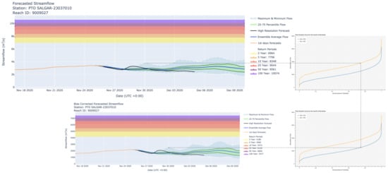 - Access to and visualizations of both the GESS hydrologic forecast and the bias-corrected forecast that can be used by local hydrological managers.