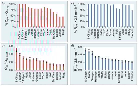 - Hernández Ayala, J.J.; Keellings, D.; Waylen, P.R.; Matyas, C.J. Extreme floods and their relationship with tropical cyclones in Puerto Rico. Hydrol. Sci. J. 2017, 62, 2103–2119. [Google Scholar] [CrossRef]