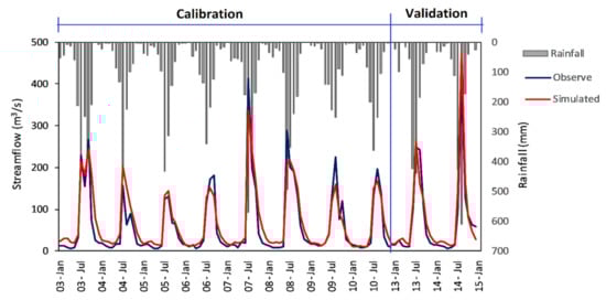A model’s simulation performance can be considered satisfactory at NSE greater than 0.5, Bias within ±25%, and R2 greater than 0.6 [].