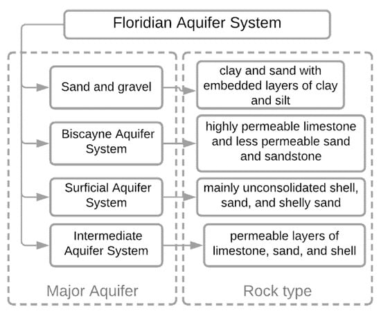 - Grubbs, J.W. Recharge Rates to the Upper Floridan Aquifer in the Suwannee River Water Management District, Florida: JW Grubbs; Prepared in Cooperation with the Suwannee River Water Management District; US Department of the Interior, US Geological Survey (USGS): Tallahassee, FL, USA, 1998. [Google Scholar]