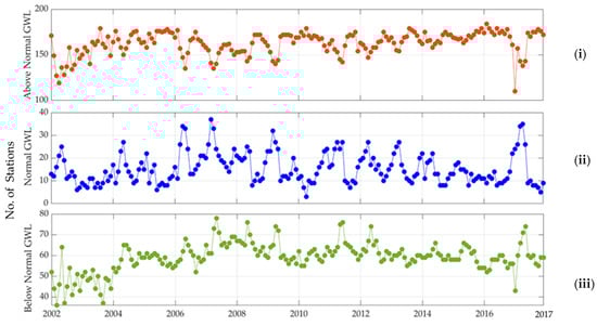 - Most of the stations were found to be above normal groundwater conditions throughout the study period.