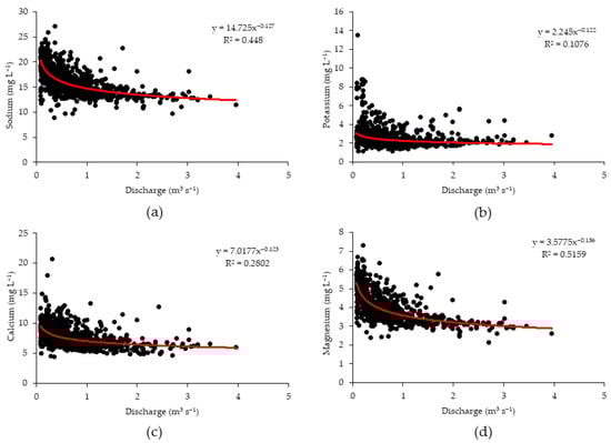 - Diamond, J.S.; Cohen, M.J. Complex patterns of catchment solute-discharge relationships for coastal plain rivers. Hydrol. Process. 2018, 32, 388–401. [Google Scholar] [CrossRef]