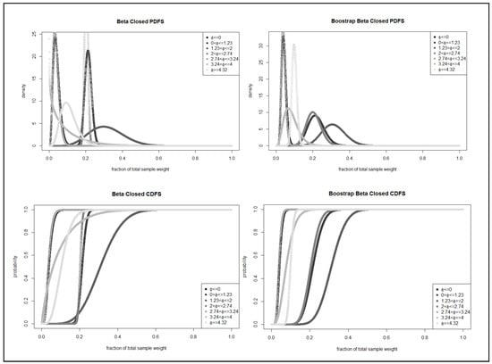 Closed design setting—beta distributions of original samples along with bootstrap distributions.