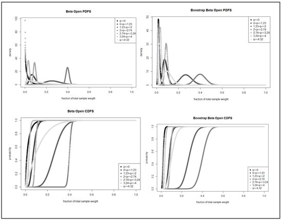 Open design setting—beta distributions of original samples along with bootstrap distributions.