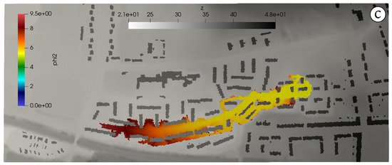3.3. Case 3: Pollutant Transport in a Mixed Environment