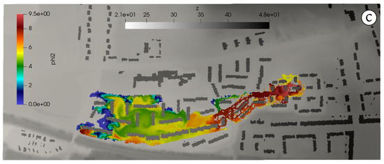 - Latorre, B.; Garcia-Navarro, P.; Murillo, J.; Burguete, J. Accurate and efficient simulation of transport in multidimensional flow. Int. J. Numer. Methods Fluids 2011, 65, 405–431. [Google Scholar] [CrossRef][Green Version]