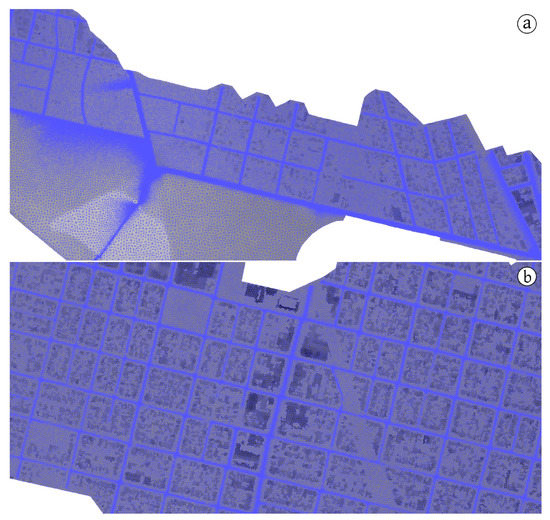 - Leandro, J.; Chen, A.S.; Djordjević, S.; Savić, D.A. Comparison of 1D/1D and 1D/2D Coupled (Sewer/Surface) Hydraulic Models for Urban Flood Simulation. J. Hydraul. Eng. 2009, 135, 495–504. [Google Scholar] [CrossRef]