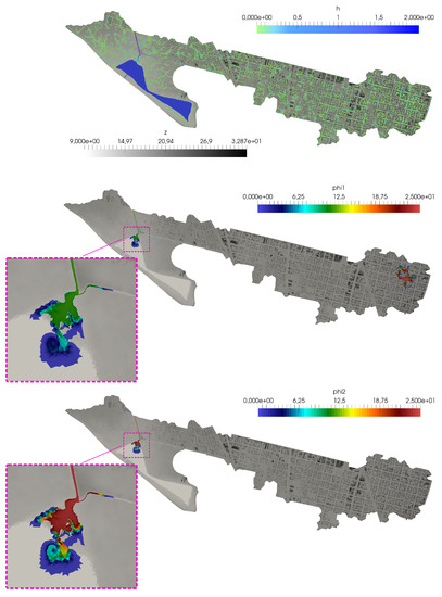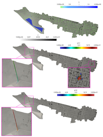 - Morales-Hernández, M.; Lacasta, A.; Murillo, J.; Brufau, P.; García-Navarro, P. A Riemann coupled edge (RCE) 1D–2D finite volume inundation and solute transport model. Environ. Earth Sci. 2015, 74, 7319–7335. [Google Scholar] [CrossRef][Green Version]