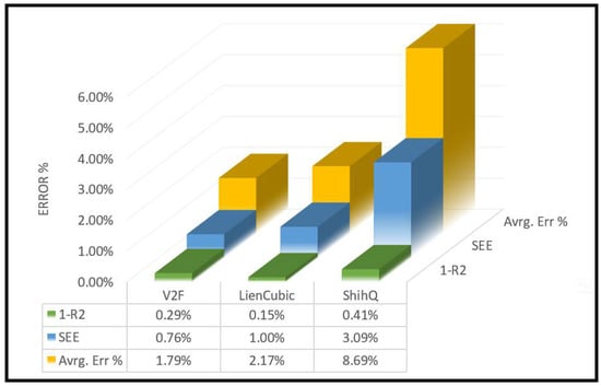 The error values from this turbulence model’s estimates show higher error percentages than the different methods, and the overall performance of this model was the poorest among the three. As shown in