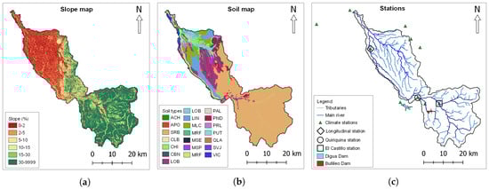43], the predominant soil textures in the catchment are loamy sand soils (71.5%) developed from basic volcanic materials, loamy silt soils (10.5%) originated from volcanic ashes and sedimentary deposits, and loam soils (10.2%) with an alluvial origin and sediment deposits.