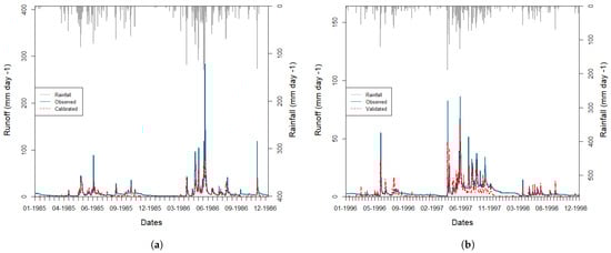 In order to analyze the calibration and validation periods, recommended ranges of values for each efficiency criterion at daily time step were used [