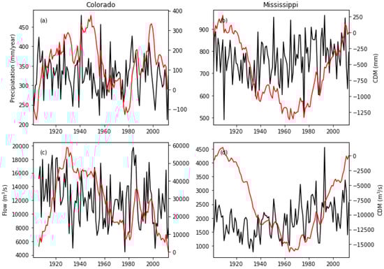- For the Colorado and Mississippi basins, LTP in annual river flows was shown to be attributable to LTP in basin average precipitation.