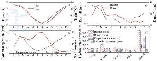 Monthly (a–c) and seasonal and annual (d) variation in climatological and hydrological variables in Manning River basin in the period of (1977–2016) as a baseline [].