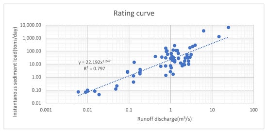 To obtain continuous sediment data, a sediment rating curve was prepared using sediment concertation, C(mg/L) data collected from the Ministry of Water and Energy (MWE,) and the Abbay Basin Authority (ABA), after converting to instantaneous sediment load (tons/day) by the formula in equation 5 [].