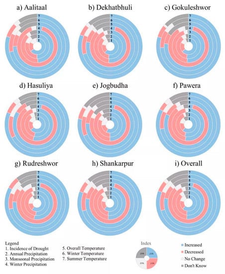 (a–i) Farmers’ perception of temporal trends of temperature, precipitation, and drought.