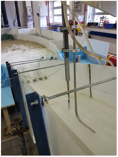These measurements were performed at a discharge rate of 1450 m3/s, i.e., the design flow rate for the hydraulic structure. The velocity profiles in two different points were measured: