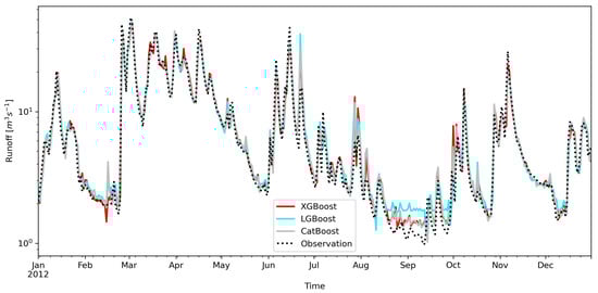 Low flows are usually overestimated for all the models. The LGBoost predictions are the highest and stand out from other models and observations. This is clearly visible at the turn of August and September 2012 (Figure 8). This is not the only such case, so it can be concluded that models of this type are not suitable for forecasting low flows.