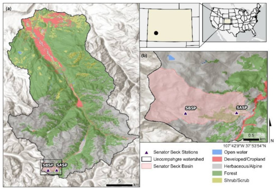 - Landry, C.C.; Buck, K.A.; Raleigh, M.S.; Clark, M.P. Mountain system monitoring at Senator Beck Basin, San Juan Mountains, Colorado: A new integrative data source to develop and evaluate models of snow and hydrologic processes. Water Resour. Res. 2014, 50, 1773–1788. [Google Scholar] [CrossRef]