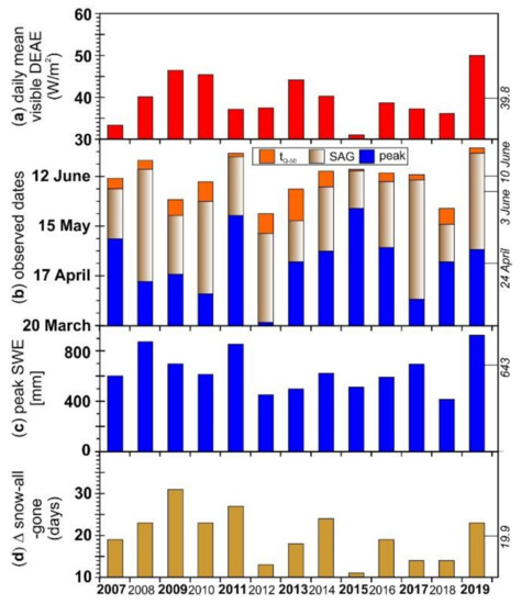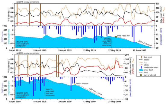 2.2. Snowpack Development and Dust Timing