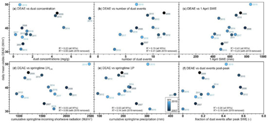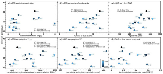 | ΔSAG | DEAE | Dust [] | # Events | HK-IN | ΣP | 1 April SWE | Dust Events Post-Peak SWE | |