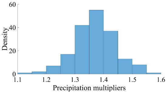 Histograms of all the precipitation multipliers combined for the Ilgaz catchment.