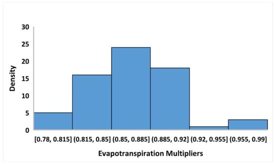 Histograms of all the evapotranspiration multipliers combined for the catchment.