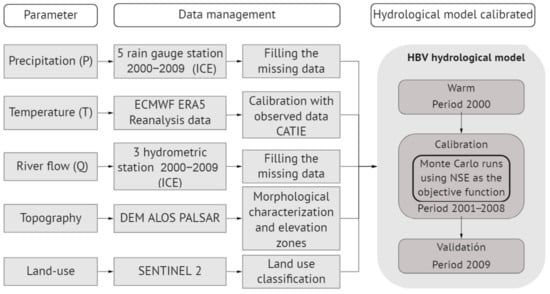 - Zuleta-Salmón, C.A. Análisis Del Comportamiento Del Recurso Hídrico Ante Cambios En El Uso Del Suelo y El Cambio Climático En La Cuenca Del Río Pejibaye, Costa Rica. Master’s Thesis, Centro Agronómico Tropical de Investigación y ENSEñanza [CATIE], Cartago, Costa Rica, 2013. [Google Scholar]