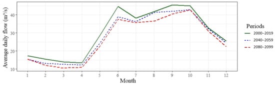 | Reduction in average monthly flow compared to the period 2000–2019 (m3/s) | ||||||||||||