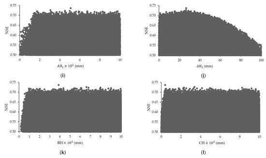 From Figure 8, as the NSE value increased, all the parameters-except A1; AH1; BH and CH–occupied a narrower zone in the parameter space.