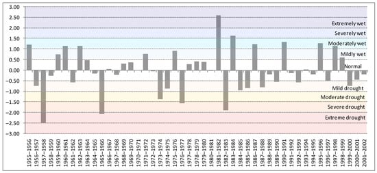 - Palmer, W.C. Meteorological Drought; Research Paper No. 45; US Department of Commerce, Weather Bureau: Washington, DC, USA, 1965.