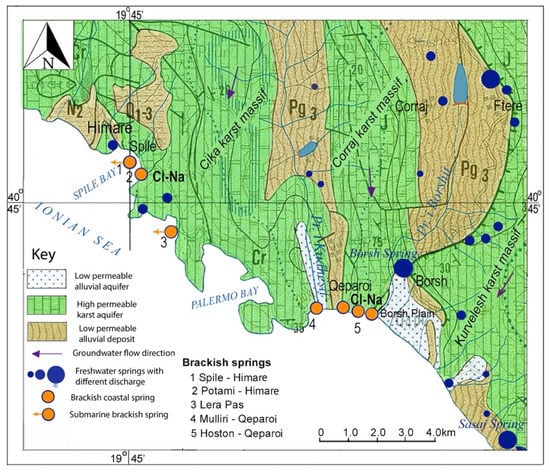 Hydrogeological map of Himare-Qeparoi (modified after [33]).