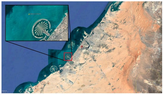 Recently, coastal areas around the world have been under significant marine and coastal development []. In particular, the coastline of Dubai, United Arab Emirates has experienced significant offshore and onshore landscape development over the past years []. Designing different types of marine and coastal structures requires accurate knowledge and analysis of long-term data about different environmental conditions such as waves. For instance, the design of safe and economic coastal and offshore structures is based on the design wave heights for different return periods []. Similarly, the safety of existing structures is affected by climate change as it influences extreme wave heights []. Therefore, the proper quantification of wave statistics, such as the extreme wave height, is a critical part of coastal structure design. For example, the poor estimation of the design wave height of a structure could result in a poor design that could lead to structural failure or expensive overdesign [,].